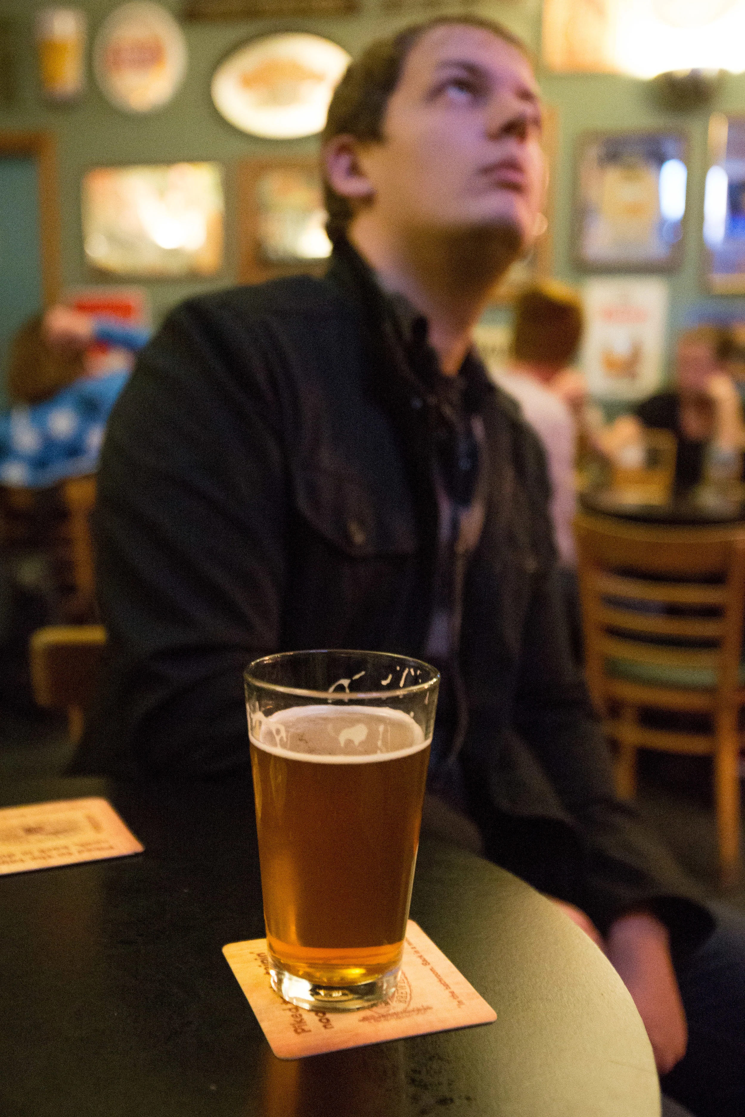 First stop, Monks Kettle. Its known as a local favorite and has up to 28 beers on tap at a given time. We decided to pop in to talk to the bartender and try a few recommendations. As we stepped in I snapped a wide angle of the bar and was pleasantly surprised at the detail rendered at such high ISO. The old 5D mk2 wasn't much use after ISO 6400, but this image at 16,000 still renders a significant amount of detail despite the level of grain that is present.