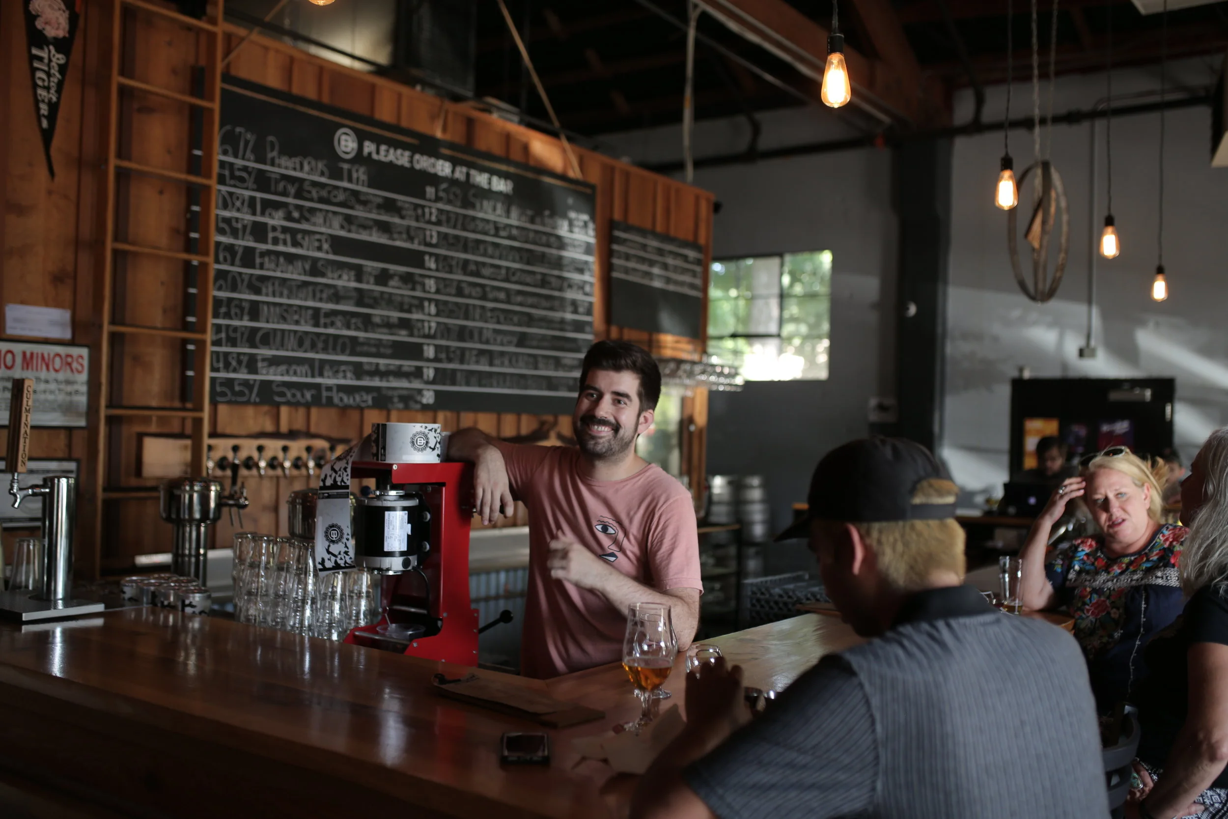 Culmination bar tender is a bit amped for the atmosphere, very hipster. Open wall design gives nice flow and less of an enclosed feel. Very friendly. Still has the Portland industrial vibe but seems to have a fresh feel, a youthful spin. Feels more like Tahoe than Portland. Board is reasonably balanced; nothing exciting in particular. Bold brewing style, diversity they lacks conviction. Sour Flower is second place for best sour we’ve had all day, surprisingly.